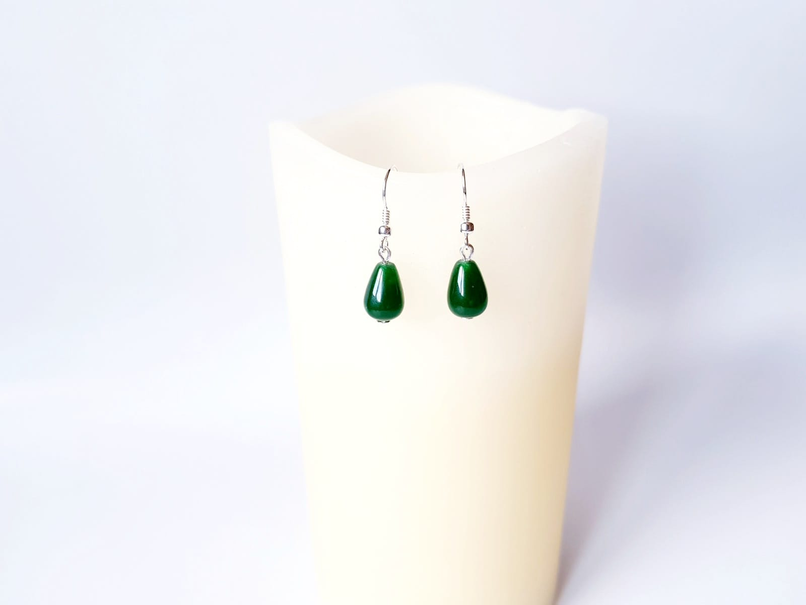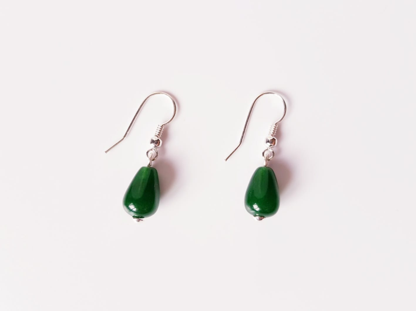 Cercei din argint cu jad verde picaturi